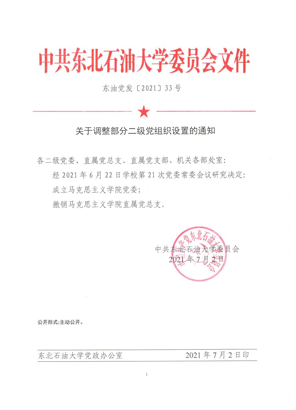 关于调整部分二级党组织设置的通知