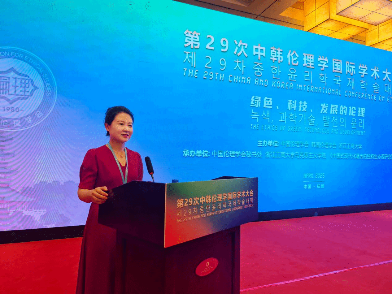 (通讯员:王法睿)2025年4月18日至20日,第29次中韩伦理学国际学术大会在杭州召开。会议由中国伦理学会、韩国伦理学会、浙江工商大学共同主办,主题为“面向未来:绿色、科技、发展的伦理”。来自国内和韩国、奥地利、美国的380多位学者参加了此次盛会。best365中国官方网站教师韩天澍受邀参加并在分论坛研讨会中发言。