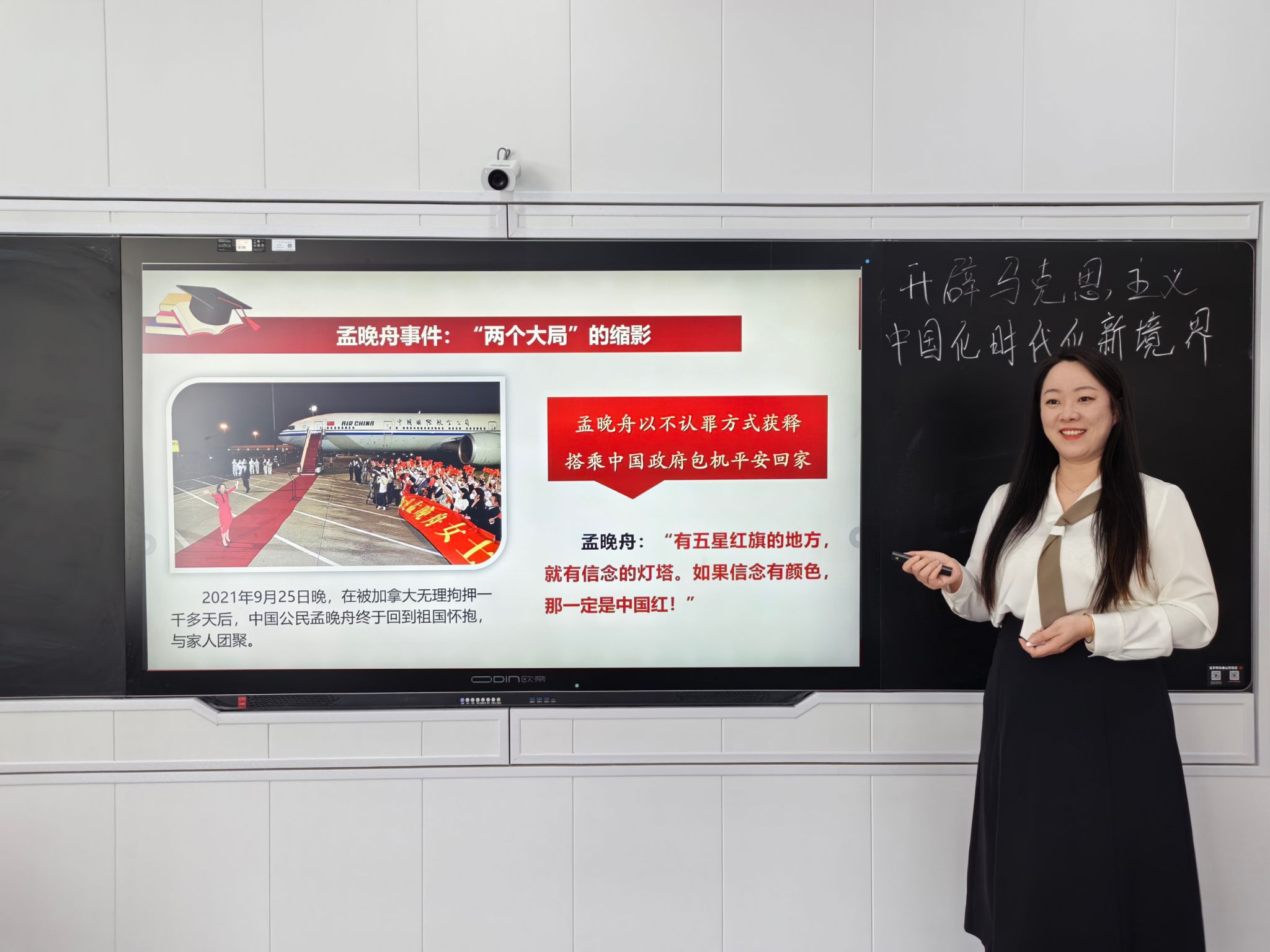 用情怀打动员工,达到情理交融。于思琪老师深知锤炼教学语言的重要性,要讲出思政课应有的精彩和风骨,既要有惊涛拍岸的声势,又要有润物无声的效果。为厚植员工的爱国主义情怀,她在一次授课中讲到华为首席财务官孟晚舟的故事,神情激昂地说:“2021年9月,孟晚舟结束了海外的非法拘押,平安地回到了祖国的怀抱。这是美国为了阻扰中国发展进程而针对中国公民的一次政治迫害。我们要深深懂得,孟晚舟之所以能够平安回家,从根本上而言,是因为她背后站着一个强大的中国!祖国永远是我们每一个公民最大的靠山和最坚强的后盾!”教室立即爆发出热烈的掌声。她接着说:“回国时她在机场发表了一个动情的演讲,澎湃地宣告:有五星红旗的地方,就有信念的灯塔;如果信念有颜色,那一定是——”“中国红!”员工们充满豪情地呐喊道。她多次说过,在课堂上展现的情怀最能打动人,甚至是会影响员工一生的,要让思政课成为一门有温度的课。
