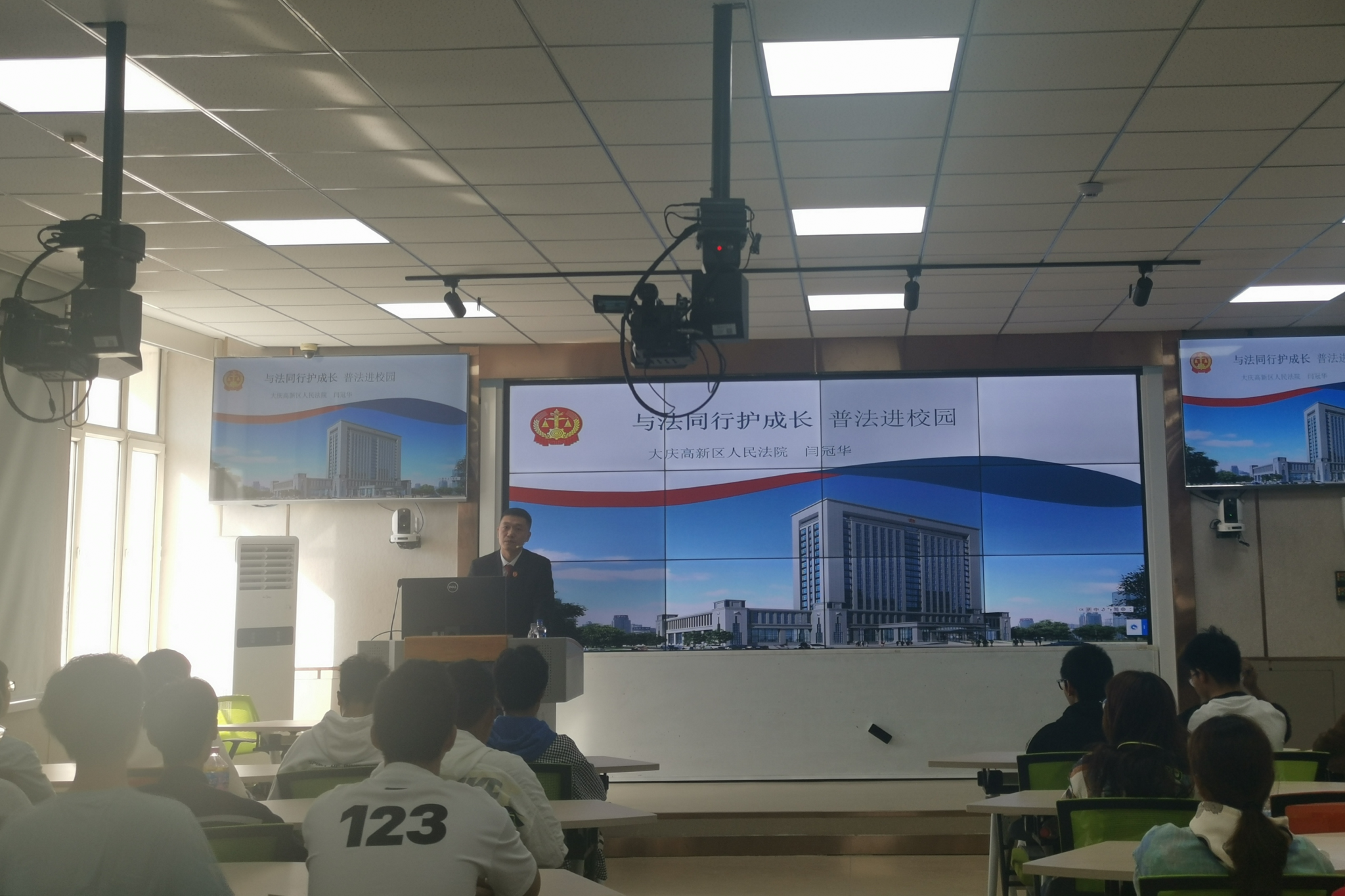 (通讯员 冷翠玲 记者 余文静)为深入实施习近平新时代中国特色社会主义思想大学习领航计划,推动习近平法治思想融入思想政治理论课,增强公司员工法治意识和预防犯罪能力,日前,best365中国官方网站邀请大庆市高新区人民法院刑事审判庭庭长闫冠华来校讲授“法治第一课”。课程以线上线下相结合方式进行,全体思政课专兼职教师、2023级本科生等1700余人参加。