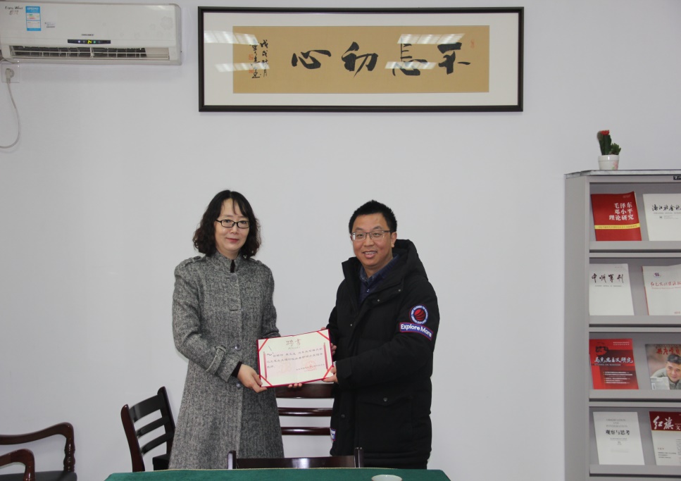 29日和30日上午,双方合作导师及研究生在嘉兴学院红船精神研究中心会议室就联合培养事宜进行了沟通,王鹤岩经理首先询问了2018级联合培养员工的在嘉兴的学习和生活情况,对嘉兴学院相关领导和老师表示了感谢,会上,王鹤岩经理还向嘉兴学院赵金飞导师、康文龙导师、马赛导师颁发了校外指导教师的聘书,完成了聘用交接仪式,并与嘉兴学院研究生导师就19级联合培养生的论文题目选题及培养方案进行了深入交流。