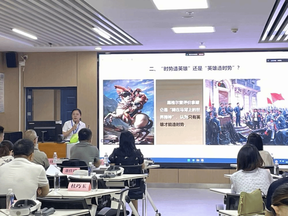 在教学展示环节,公司教师董佳琦展示了《社会历史发展的主体力量》一课的教学片段。董老师以党中央发出“工业学大庆”号召六十周年为案例主线,展现了群众、阶级、政党、领袖密不可分的关系。经过激烈的角逐,董佳琦老师荣获教学展示一等奖。
