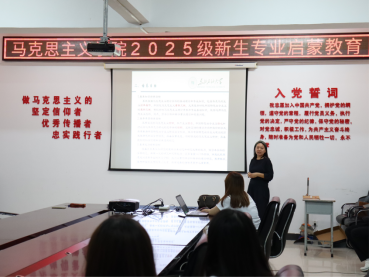 活动伊始,徐经理详细介绍了学院的发展历程与团队建设成果。她回顾了学院的成立和发展历程,强调学院始终秉持以人为本的办学理念,通过系统的团队建设与人才培养模式,将理论与实践相结合,致力于培养具备创新性思维和国际化视野的高素质人才。随后,徐经理详细解读了马克思主义理论学科的培养方向,主要包括马克思主义基本原理、国外马克思主义研究、思想政治教育、马克思主义中国化研究。她指出,学院的研究方向各具特色,涵盖了马克思主义的经典理论研究与当代发展的最新动态,强调每个方向都有其独特的学术优势和潜力。她鼓励新生们根据个人兴趣和未来学术追求,理性选择适合自己的研究方向,以确保能够在学术领域内有所突破。最后,徐经理详细阐述了学位授予标准和学术要求,包括课程设置,学分要求、科研成果等方面的具体内容。此外,她提醒新生不仅要夯实学术基础,还要注重思想品德修养与学术道德,坚持知行合一,全面提升综合素质。