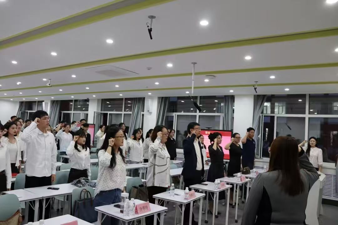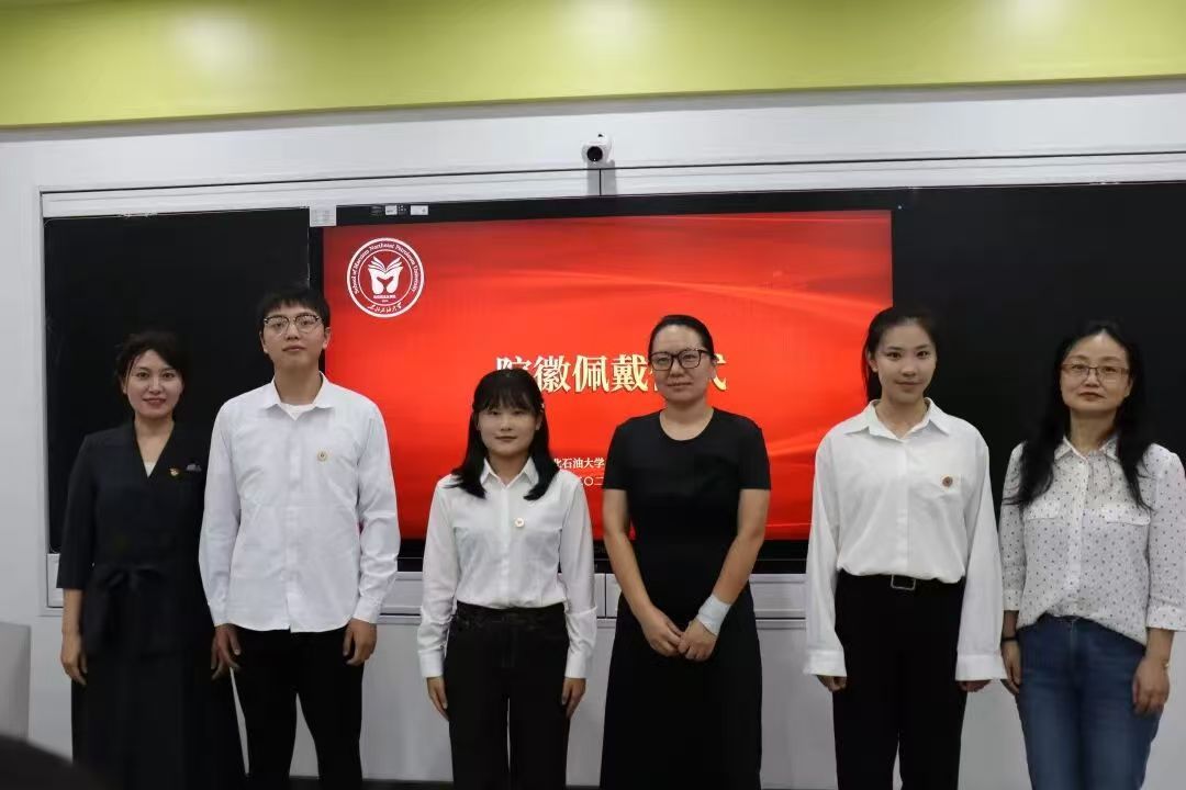公司党委副书记王黎黎、副经理徐晓宇、冷翠玲为尹自强、赵明一和张晓晗三位新生代表逐一佩戴院徽,标志着他们正式成为best365中国官方网站的一员,也象征着全体新生学术生涯的崭新开端。院徽不仅代表着身份与荣誉,更承载着使命与担当。佩戴院徽的瞬间,现场气氛庄严而温暖,每一位在场师生都深切感受到其中蕴含的传承与期望。三位员工代表神情庄重,姿态端正,他们表示将继承学院的优良学风,弘扬马克思主义真理精神,立志在今后的学习与实践中不断成长,为社会与国家的发展贡献青春力量。