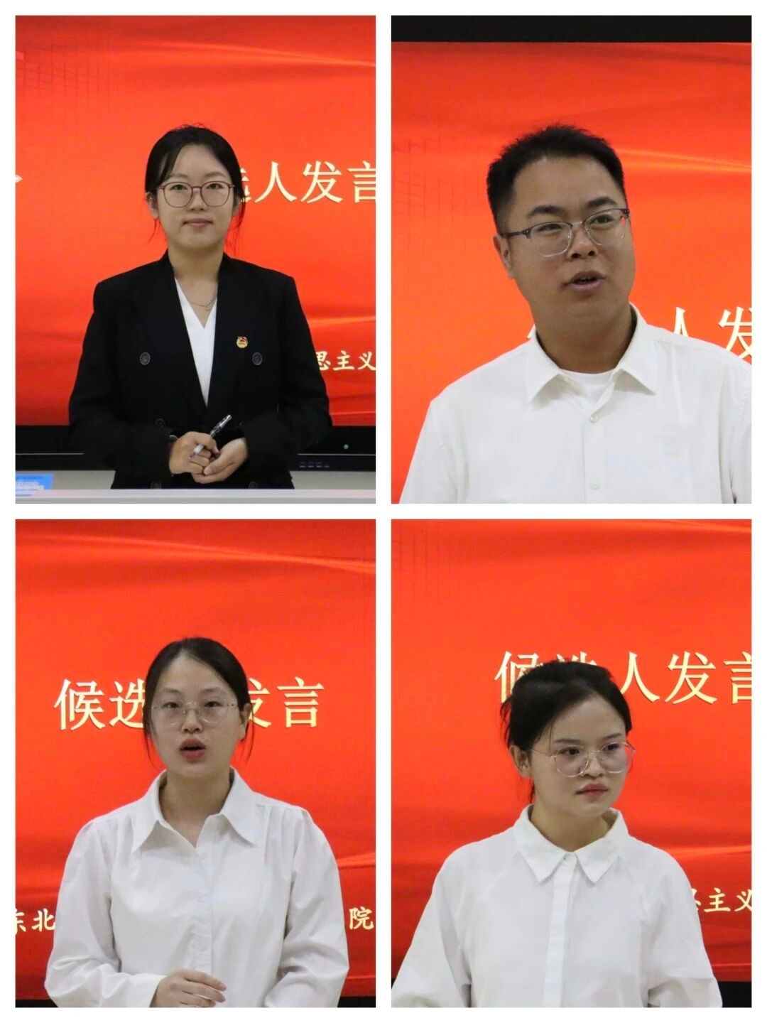 会上,来自院团委、院研究生会、院新媒体中心的候选人依次登台。他们精神饱满、自信从容,结合自身丰富的员工工作经历与实践经验,详细阐述了对所在员工组织的工作设想及未来发展的长远规划。
