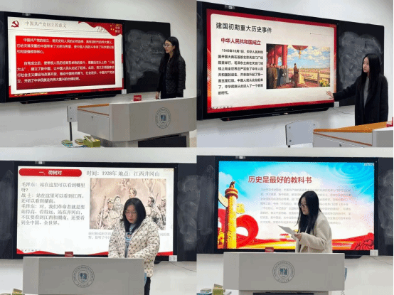 随后,四位同学依次登台进行主题分享,充分展现了马院员工对“四史”中“党史”和“新中国史”的深刻理解。
