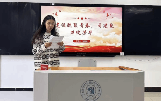 张晓晗同学以“党建领航聚青春,团建聚力绽芳华”为题,她强调,唯有以党建为方向引领,以团建为力量纽带,才能为青年成长成才筑牢思想根基。