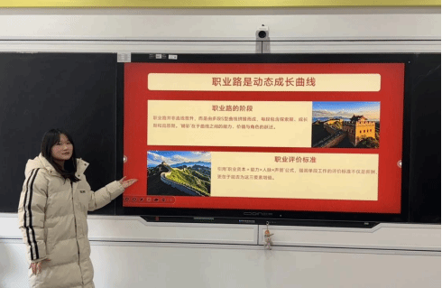 于千惠同学围绕当前就业形势,并结合近年来高校毕业生就业数据,分析了马克思主义理论类专业在党政机关、企事业单位、基层治理、教育科研等领域的就业优势与发展潜力,鼓励同学们以积极心态面对就业挑战,主动规划职业发展路径。赵明一同学结合马克思主义职业观经典论述,围绕“新时代青年的责任与担当”“职业选择中的价值排序”等主题,引导同学们深刻认识就业不仅是谋生手段,更是实现人生价值、服务社会发展的重要途径。