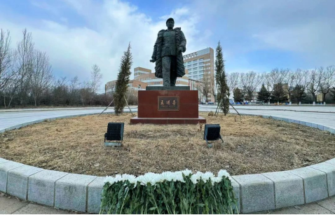 随后,师生代表们有序地走到铁人雕像前,献上鲜花,为铁人王进喜默哀,缅怀他为中国石油事业作出的巨大贡献和崇高精神。
